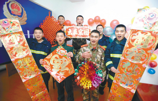 2月9日,记者分别来到沈河、南湖、铁西消防中队,为他们送去了“红门”春联和新春祝福。