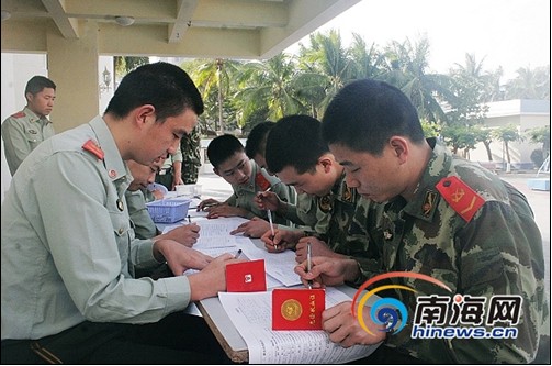 从一言一行学起,从一点一滴做起。海南边防总队海警二支队政治委员钟尔康介绍道:“学习雷锋精神已经在部队延续了50个年头,雷锋精神是部队官兵不可或缺的精神支柱,我们把雷锋精神作为部队官兵思想道德教育的重要组成部分,几年来,学习雷锋、争当雷锋的现象在官兵当中蔚然成风,雷锋精神也已常驻官兵心中。”