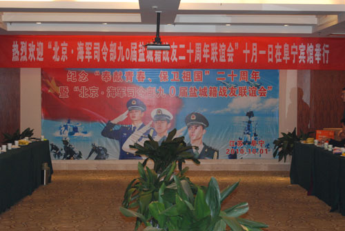 中国老兵网10月1日讯 今天是中华人民共和国成立六十一周年,值此之际,北京海军司令部九零届盐城籍战友联谊会在阜宁举行。
