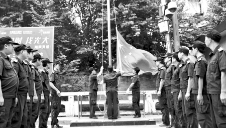 小区保安队队长老赵说,每逢元旦、春节、五一、国庆4大假期,他们都会举行列队升国旗仪式。每周4保安们都会集训半天,其中的一项重要内容就是训练走正步,因此升国旗时才能踢出较为标准的正步。“过去我们保安队中退伍老兵比较多,那时国旗队走出的正步漂亮极了!”老赵说,“现在保安缺编,来的老兵也少了,原先23人的国旗队缩减成13人,但国旗队的威武还是在的。”