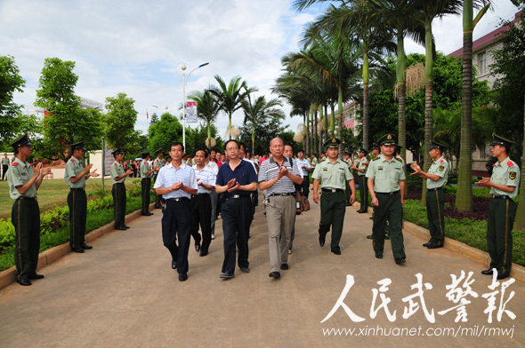 这个部队诞生于抗日战争时期,先后转战祖国大江南北10余个省、市,2次被授予“特等功臣团”荣誉称号,3次参加边疆作战,涌现出一大批英雄集体和英模个人。8时许,126名老兵整齐列队,迈着坚定的步伐重返当年生活和战斗过的老部队,风采丝毫不减当年。早已迎候的官兵们以最隆重的方式欢迎老前辈们,由78名官兵组成的“威风锣鼓队”气势宏伟,锣鼓声响彻警营内外,一幅“欢迎老首长、老战友回家”的横幅格外显眼。在政治处主任蒋会明的引领下,老兵们参观了新营房、综合训练场和生活服务中心等场所。在被中央军委授予“攻坚英雄连”荣誉称号的二连荣誉室里,老兵们翻开那一本本厚重的光荣簿,看着那一个个熟悉的名字禁不住热泪盈眶。老兵们一边认真倾听部队的建设发展历程,一边仔细端详珍贵的历史照片,在一面面耀眼的锦旗下,老兵们争相用手中的照相机、摄像机拍照留念。