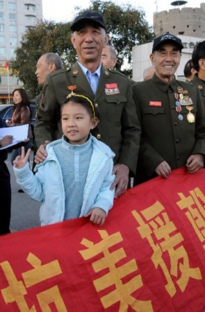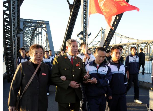 今年10月25日是中国人民志愿军赴朝参战60周年纪念日。在纪念日前夕,来自全国各地的抗美援朝老兵齐聚丹东,重走鸭绿江断桥。
