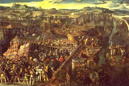 1525年2月24日,帕维亚战役打响。当选神圣罗马帝国皇帝的西班牙国王,哈布斯堡王朝的查理五世为争夺意大利土地,在意大利的帕维亚击败法国国王法兰西斯一世,两万八千名法军被两万三千名西班牙军几乎全歼,法兰西斯一世也被俘虏。西班牙军队在此战役中以装备火绳枪的西班牙雇佣步兵部队为主力,显示了热兵器在战争中的巨大威力。