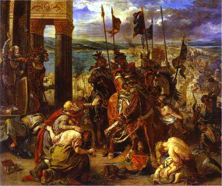 1204年4月13日,在威尼斯的威胁利诱下,进行第四次东征的十字军以平定内乱为名,攻克东罗马帝国(拜占庭帝国)首都君士坦丁堡,对这座历史名城烧杀洗劫数日,掠夺毁坏历史文物不计其数。大战过后,威尼斯占去拜占庭帝国八分之三的领土(包括爱琴海,亚得里亚海沿岸许多港口和克里特岛)。十字军则以君士坦丁堡为中心建立了拉丁帝国。此次东征导致十字军臭名昭著。