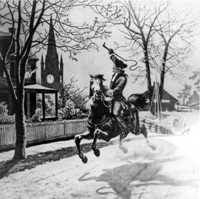 1775年4月18日,英国在马萨诸塞的总督托马斯·盖奇从波士顿派遣800名英军士兵前往康科德,搜缴当地民兵“一分钟人”的秘密军需库。这一消息很快为“通讯委员会”情报员截获。“通讯委员会”的信使保尔·瑞维尔立即骑马赶到康科德报警。