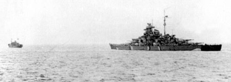1941年5月19日,作为“莱因演习”作战计划的核心部分,德国最新战列舰“俾斯麦”号与“欧根亲王”号重巡洋舰,在四艘驱逐舰的护航下,从波兰的格丁尼亚港出航。德舰出波罗的海经卡特加特海峡,沿挪威海岸北上,于5月21日驶入卑尔根东南的科尔斯峡湾。此后,“俾斯麦”号与“欧根亲王”号结伴闯入北海。