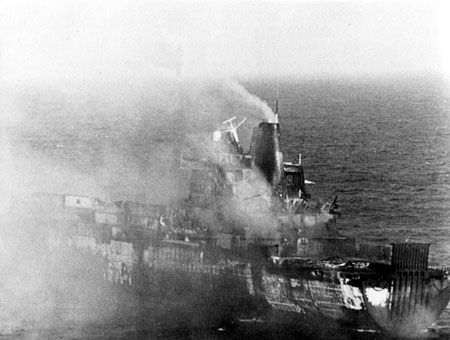 正在沉没的“考文垂”号驱逐舰