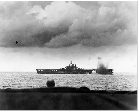 此外,美国潜艇“赖鳍”号发射的3条鱼雷击中日本久经战火的“翔鹤”号航空母舰,使其于14时10分沉没在海底。这样,日本仅有的三艘大型航空母舰,在未受到美军航母攻击前就损失了两艘。至19日夜间,日军残余的航母舰载机仅剩102架。