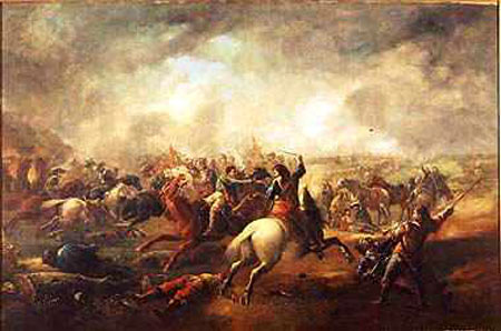 1644年7月2日,马斯顿荒原之战爆发。在克伦威尔率领的左翼骑兵队的奋战下,英国国会军一举将查理一世的国王军(统帅为鲁伯特王子)击溃。此战役中国王军投入1.5万人(骑兵7000人),死亡3000多人,被俘1500人。马斯顿荒原之战是英国内战的转折点,它扭转了国会军连连失利的局面。克伦威尔的部队因此战役以“铁骑军”闻名全国。
