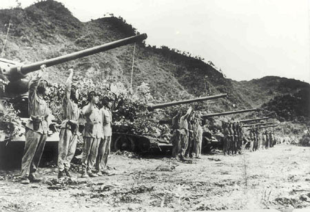 1953年7月13日,抗美援朝夏季反击战役第三阶段作战(金城战役)打响。在金城地区韩国军4个师的正面,志愿军集中了6个军(第21、第54、第60、第67、第68、第24军),并且加强了大量的支援兵力。该正面志愿军共有82迫击炮以上地面火炮1100余门(平均每公里44.4门),坦克20辆。形成了兵力上3倍于敌,火炮数量上1.7倍于韩国军的优势。在志愿军第20兵团各部队及第9兵团第24军在一千余门大炮支援下,经过7~28分钟的火力准备,同时向韩国军展开猛烈突击,一小时内全部突破韩国军前沿阵地。