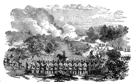 1861年7月21日,美国南北战争中的“第一轮牛奔”战役(第一次曼萨斯会战)打响。此战役发生于弗吉尼亚州 的曼萨斯,是美国内战中第一次大规模交战。北军拥有28450人,指挥官为麦克托维尔,南军投入了32230人,指挥官为蒋斯顿等。此次战役尽管南军一度 因指挥无序陷入被动,但是托玛斯·杰克逊指挥的弗吉尼亚军团的一个旅顽强坚守防线屹立不动,同其他部队共同扭转了战局,托玛斯·杰克逊也因此被誉为“石 墙”。此次战役北军伤亡1584人,失踪被俘1312人,南军伤亡1969人,失踪被俘13人。
