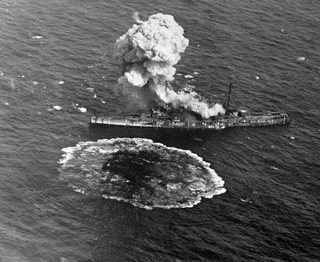 1921年7月21日,美国陆军航空部队助理司令威廉·米切尔在切萨皮克湾进行一次著名的空中轰炸表演。在轰炸 试验中,8架美军轰炸机用炸弹炸沉了包括23000吨的前德国战列舰“东弗里斯兰”号、12000吨的退役美国战列舰“亚拉巴马”号等多艘靶舰,初次显示 了空中力量在海战中的巨大威力。