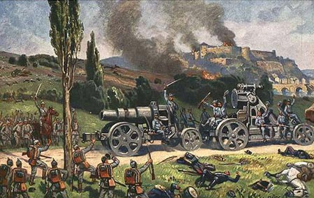 1914年8月12日,德军在列日要塞前线投入名为“大贝尔塔”的420毫米大口径攻城榴弹炮,其炮弹质量达1吨。德军随即开始对比利时要塞进行毁灭性的轰击,打开了列日战役的僵局。