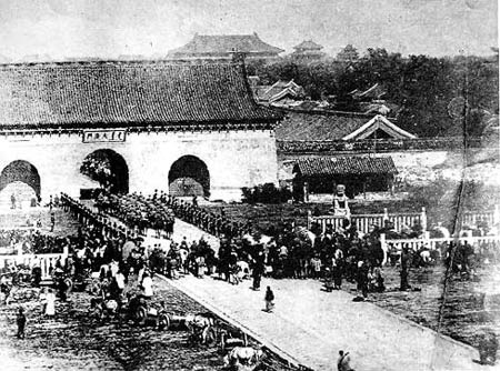 1900年8月16日,八国联军各国司令官“特许军队公开抢劫三日”,开始了对中国首都北京的大肆烧杀抢掠。无 数中国民众被大肆屠杀,大量财产和历史文物惨遭毁坏和掠夺。其中,清朝皇宫中凡是拿得走的贵重物品,一概拿走,凡是拿不走的便一概打碎,据估计,八国联军 所掠夺的财物总价值不少于数十亿两白银。
