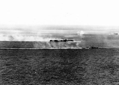 1944年10月25日,萨马岛海战爆发。由于日军小泽编队成功吸引了美军第3舰队等部队,日本栗田舰队乘机向莱特湾进发。在萨马岛海域,与美军第7舰队护航航母第3大队遭遇,实力弱小的美军舰队在日军战列舰舰队的攻击下损失严重,“圣洛”号、“甘比尔湾”号护航航母被击沉,2艘驱逐舰和1艘护卫舰被击沉,4艘护航航母被击伤。但是日军由于指挥混乱,未能给予美军以歼灭性打击,同时自己也损失惨重。日军3艘重巡洋舰、1艘轻巡洋舰、3艘驱逐舰被击沉。