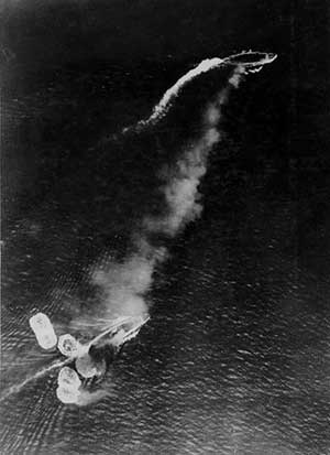1941年12月10日,英国战列舰“威尔士亲王”号和战列巡洋舰“反击”号马来半岛关丹附近海域,被从西贡基地起飞的日本陆基轰炸机炸沉。包括英国东方舰队司令菲利普斯在内的840名官兵身亡,而日本飞机损失轻微。此战使得英国赖以从事威慑的两艘大型战舰葬身海底,这次战斗也是人类历史上航空兵首次单独击沉航行中的大型战列舰。