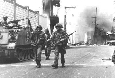 1989年12月20日,美军为除掉巴拿马领导人诺列加,以隶属于美军“南方司令部”的1.3万名驻军分五路,同时向巴拿马城及其周围目标发起突然袭击。至傍晚,美军又得到本土等82空降师、第5步兵师的部队约数千人的增援,总兵力达到2.4万人,大大超过1万多人的巴拿马国防军。